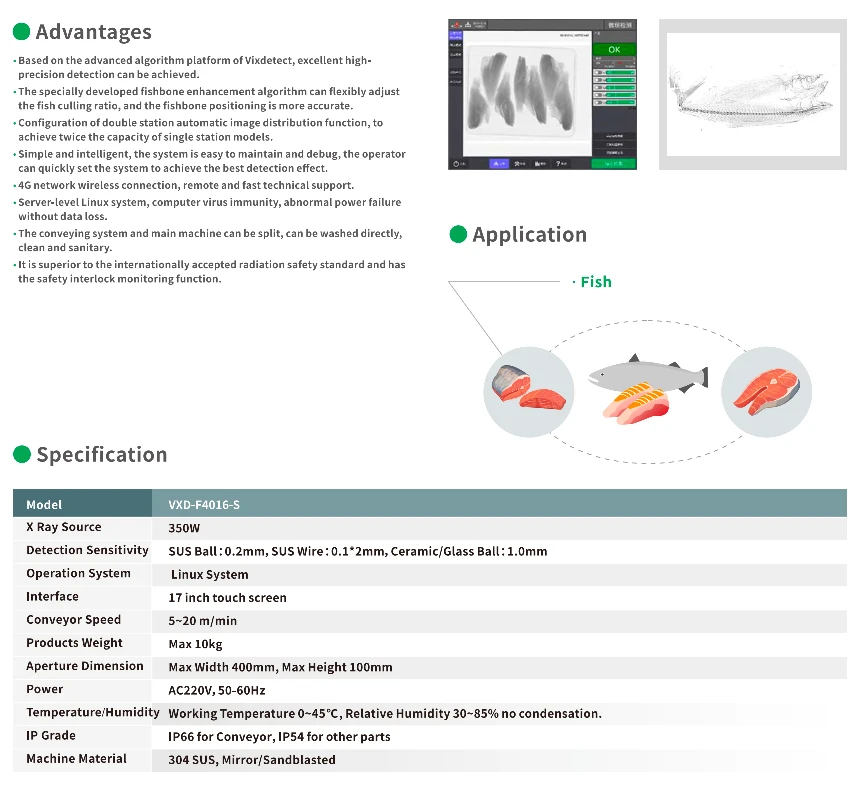 對魚製品中的魚刺進行成像,並在單或雙高清大螢幕上增強顯示,操作員可以有效地去除魚刺。
